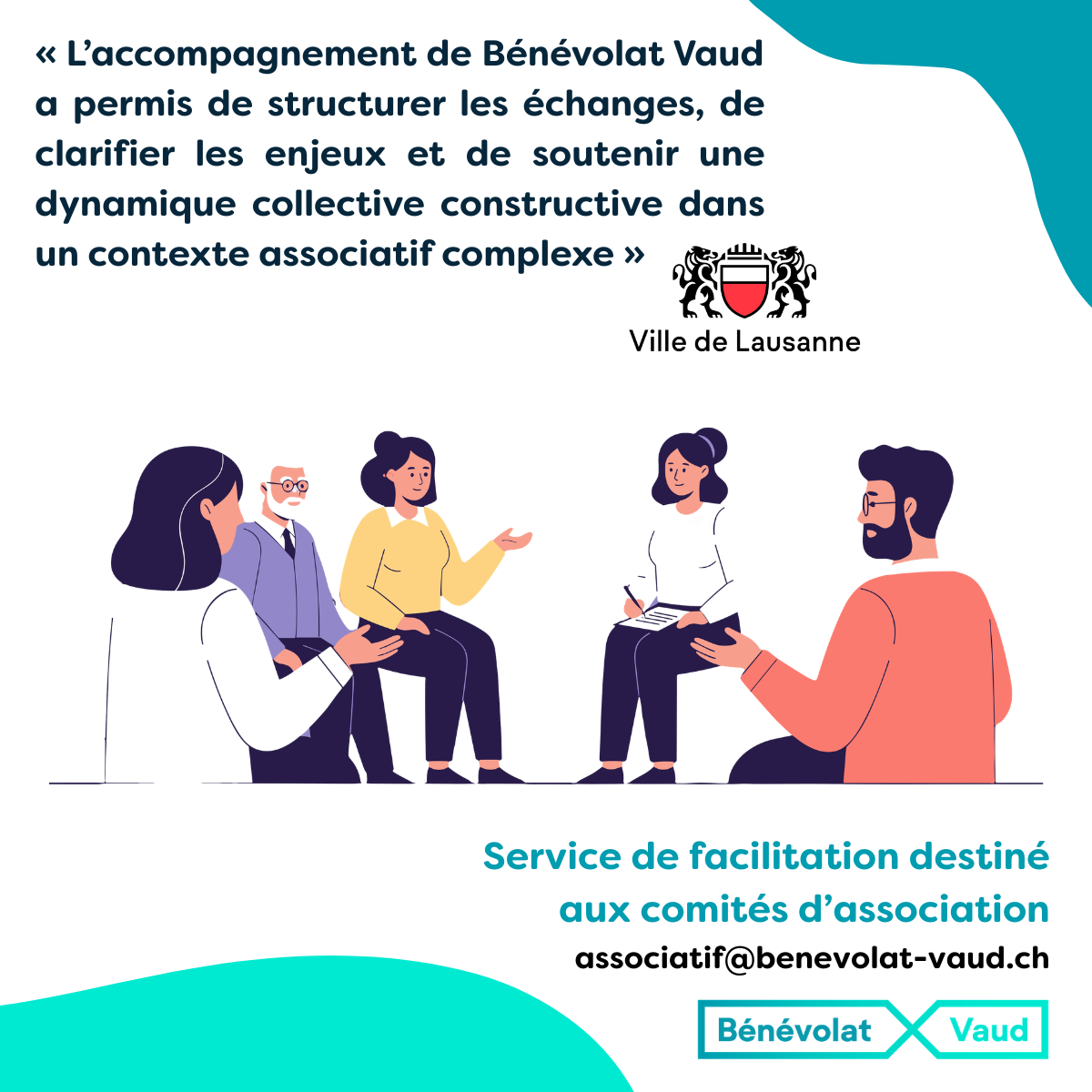 Les associations intéressées peuvent transmettre un descriptif de leur situation à associatif@benevolat-vaud.ch ou contacter la réception au 021 313 24 00 (9h00–12h30). Un échange téléphonique permet d’évaluer les besoins et, si pertinent, d’organiser une première rencontre.
